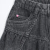 Mini suknja od mješavine trapera i pamuka s kopčanjem na dugme i rajsferšlus. Dva prednja džepa + mali džepić.
