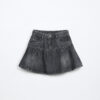 Mini suknja od mješavine trapera i pamuka s kopčanjem na dugme i rajsferšlus. Dva prednja džepa + mali džepić.