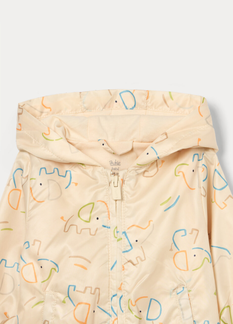 BABY JACKETS, Vjetrovka sa printom po cijeloj površini i kapuljačom. Kopčanje na rajsferšlus. Dva ušivena džepa sprijeda. Manžetne od rebraste tkanine.